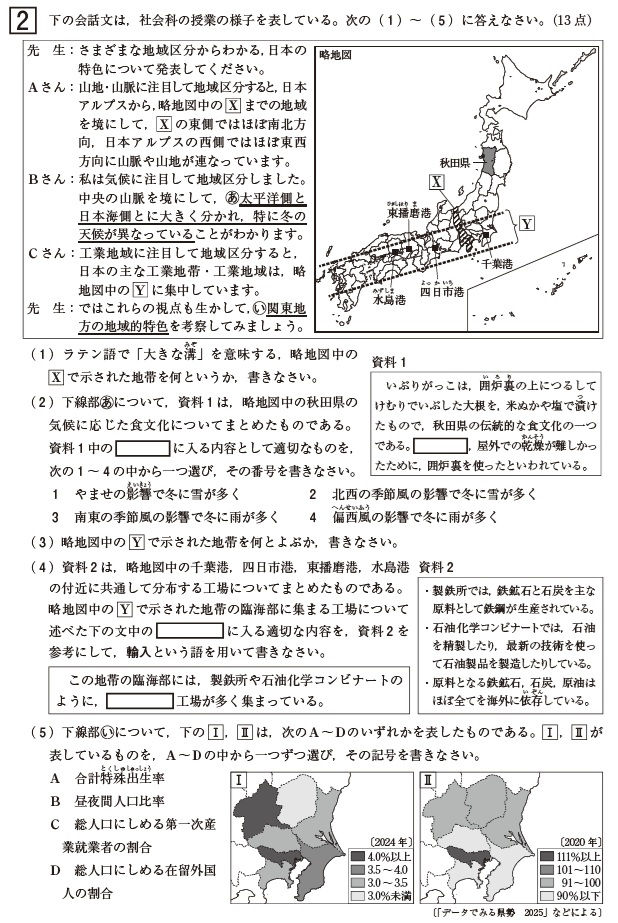 3月5日に青森県立高校の入学試験が行われました。当塾では、今年度も多くの塾生が挑戦しました。ここでは、社会の本試験問題について解説します。